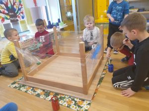 Stigao nam je ožujak, a s njime i prvi vjesnici proljeća. Djeca su upoznala prve vjesnike proljeća te su ih imali priliku uživo promatrati i pomirisati. Djeca su se kreativno i maštovito izražavala raznim likovnim tehnikama. Zajedno s djecom, u našem dvorištu vrtića, posadili smo jaglace o kojima smo svaki dan brinuli i zalijevali ih. Razgovarali smo o različitostima među ljudima. Naučili smo da postoje različitosti u vjeri, spolu, rasi, načinu odijevanja i sl. Ono što smo još obuhvatili ovom temom jest to da su neki ljudi umjetnici u slikanju bez obzira što imaju fizički nedostatak. Omogućili smo djeci da se okušaju u likovnim tehnikama crtanjem ustima ili nogama. U našem dvorištu vrtića djeca su uočila da je procvalo drvo i da su dani topliji. Uz inicijativu djece, odlučili smo se za temu “Priroda se budi”. Tema je obuhvatila radove u vrtovima i poljima te buđenje pčela i ostalih usnulih životinja. Stigao nam je najveći blagdan Uskrs. Djeca su se veselila ovome blagdanu te s veseljem uživali u svim aktivnostima vezanim za Uskrs. Najviše ih je radovalo bojanje pisanica kojima smo ukrasili svoj vrtić. Također smo bili i mali zečići s velikim ušima. Nakon Uskrsa obilježili smo tjedan zdravlja. Djeca su naučila što je zdrava prehrana te smo izradili svoju piramidu zdravlja. Na zdravlje smo se nadovezali s temom “Higijena zubi i tijela”. Djeca su uživala promatrajući i koristeći stomatološki pribor u igri. Naučili smo puno o higijeni tijela i zubi, a također smo učili pravilno prati ruke i zube, u čemu nam je pomogla zdravstvena voditeljica vrtića. Sva djeca donijela su u vrtić svoje četkice za zube i pranjem zubi završio nam je tjedan higijene. Djeci se tema jako svidjela pa smo ju proširili s temom “Moje tijelo i organi”. Djecu su zainteresirale razne slikovnice i enciklopedije o tijelu i organima. Stariju djecu zanimala je grupna aktivnost izrade tijela i organa. Usvojili su nova i proširili dosadašnja znanja o unutrašnjosti ljudskog tijela i organa. Zadnji tjedan u travnju bili smo mali znanstvenici koji su eksperimentirali sa raznim pokusima. Svaki dan smo otkrivali nešto novo i uživali u svakom novom eksperimentu. Djecu je najviše dojmio eksperiment “Vulkan” i “Što je to tlak?” Sve je više toplijih dana te duže boravimo i provodimo igre na zraku. S veseljem iščekujemo toplije dane i ljeto.