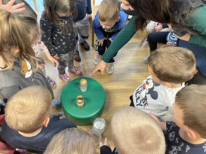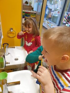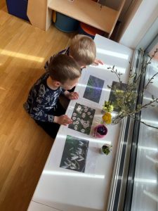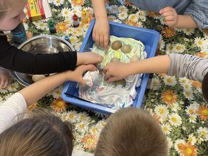 Stigao nam je ožujak, a s njime i prvi vjesnici proljeća. Djeca su upoznala prve vjesnike proljeća te su ih imali priliku uživo promatrati i pomirisati. Djeca su se kreativno i maštovito izražavala raznim likovnim tehnikama. Zajedno s djecom, u našem dvorištu vrtića, posadili smo jaglace o kojima smo svaki dan brinuli i zalijevali ih. Razgovarali smo o različitostima među ljudima. Naučili smo da postoje različitosti u vjeri, spolu, rasi, načinu odijevanja i sl. Ono što smo još obuhvatili ovom temom jest to da su neki ljudi umjetnici u slikanju bez obzira što imaju fizički nedostatak. Omogućili smo djeci da se okušaju u likovnim tehnikama crtanjem ustima ili nogama. U našem dvorištu vrtića djeca su uočila da je procvalo drvo i da su dani topliji. Uz inicijativu djece, odlučili smo se za temu “Priroda se budi”. Tema je obuhvatila radove u vrtovima i poljima te buđenje pčela i ostalih usnulih životinja. Stigao nam je najveći blagdan Uskrs. Djeca su se veselila ovome blagdanu te s veseljem uživali u svim aktivnostima vezanim za Uskrs. Najviše ih je radovalo bojanje pisanica kojima smo ukrasili svoj vrtić. Također smo bili i mali zečići s velikim ušima. Nakon Uskrsa obilježili smo tjedan zdravlja. Djeca su naučila što je zdrava prehrana te smo izradili svoju piramidu zdravlja. Na zdravlje smo se nadovezali s temom “Higijena zubi i tijela”. Djeca su uživala promatrajući i koristeći stomatološki pribor u igri. Naučili smo puno o higijeni tijela i zubi, a također smo učili pravilno prati ruke i zube, u čemu nam je pomogla zdravstvena voditeljica vrtića. Sva djeca donijela su u vrtić svoje četkice za zube i pranjem zubi završio nam je tjedan higijene. Djeci se tema jako svidjela pa smo ju proširili s temom “Moje tijelo i organi”. Djecu su zainteresirale razne slikovnice i enciklopedije o tijelu i organima. Stariju djecu zanimala je grupna aktivnost izrade tijela i organa. Usvojili su nova i proširili dosadašnja znanja o unutrašnjosti ljudskog tijela i organa. Zadnji tjedan u travnju bili smo mali znanstvenici koji su eksperimentirali sa raznim pokusima. Svaki dan smo otkrivali nešto novo i uživali u svakom novom eksperimentu. Djecu je najviše dojmio eksperiment “Vulkan” i “Što je to tlak?” Sve je više toplijih dana te duže boravimo i provodimo igre na zraku. S veseljem iščekujemo toplije dane i ljeto.